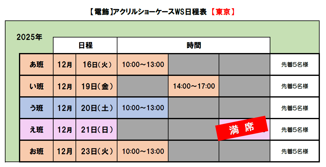 【う班】12月20日(土)10:00~13:00【先着5名様】