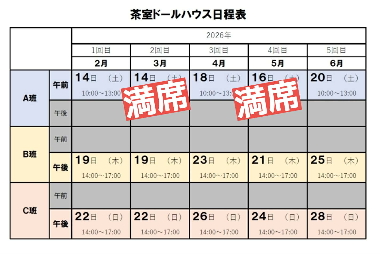 【A班】→満席