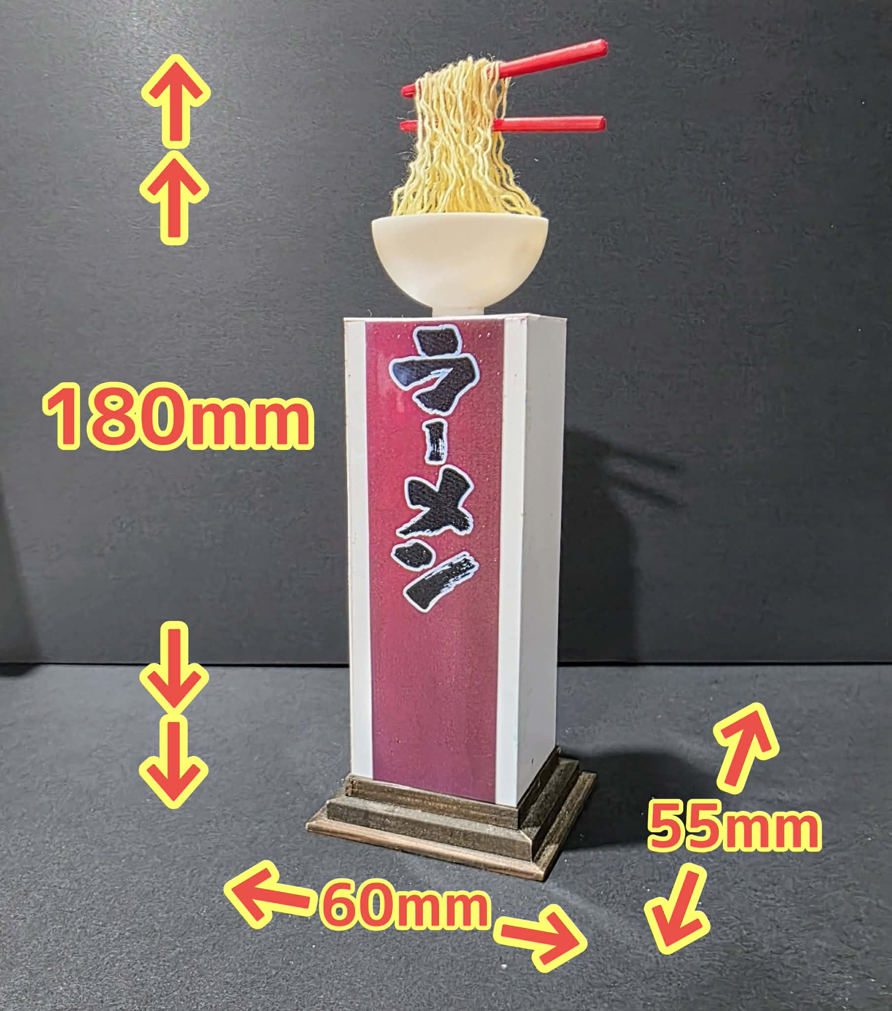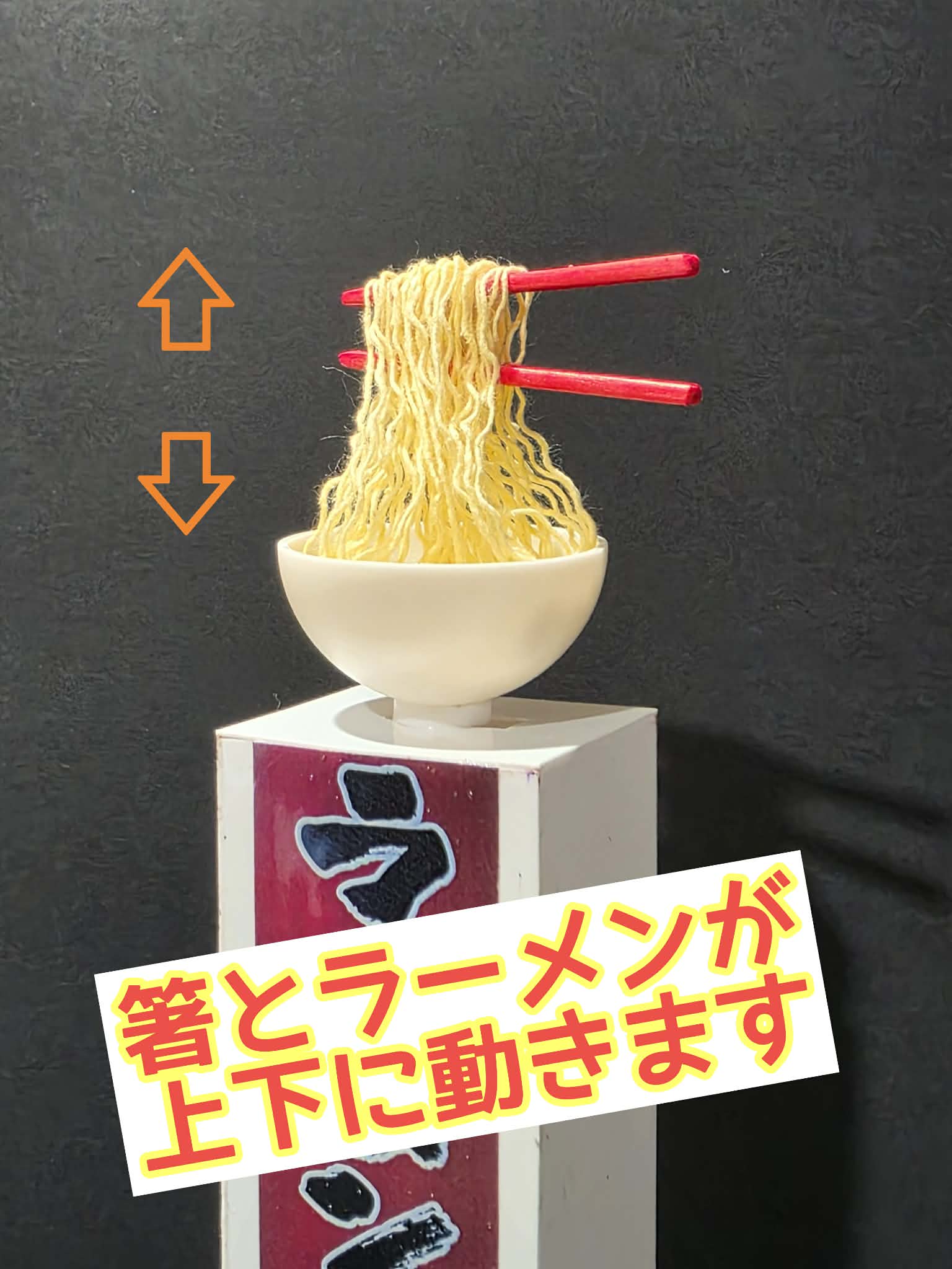 “麺を持ち上げる動き”を再現したミニチュア看板を制作します。