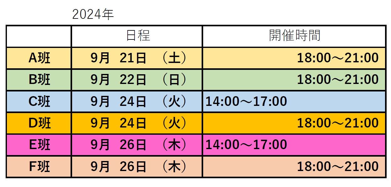C班 9月24日(火)14:00~17:00 【先着10名様】